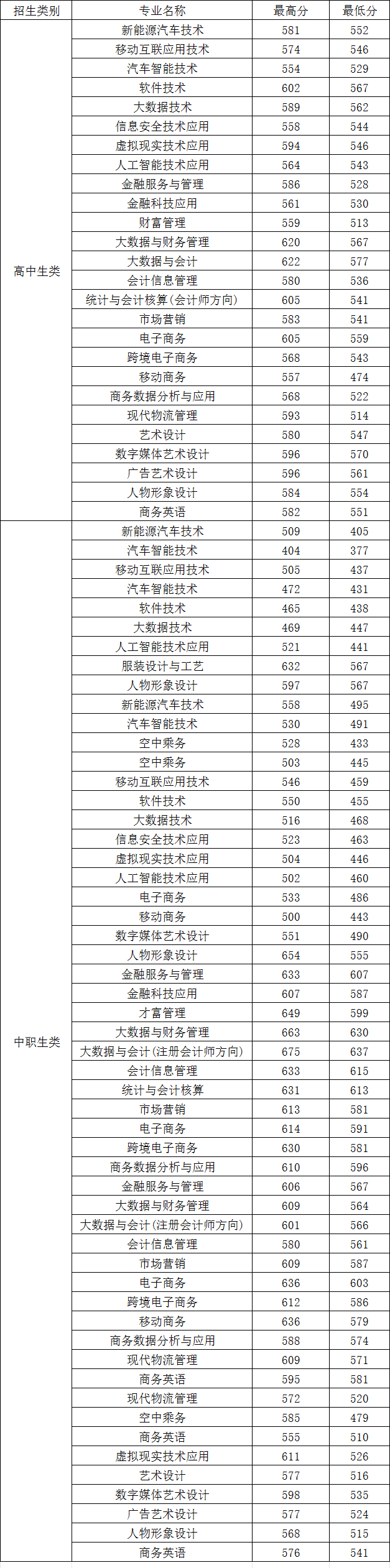 泉州经贸职业技术学院2023年高职分类录取分数线